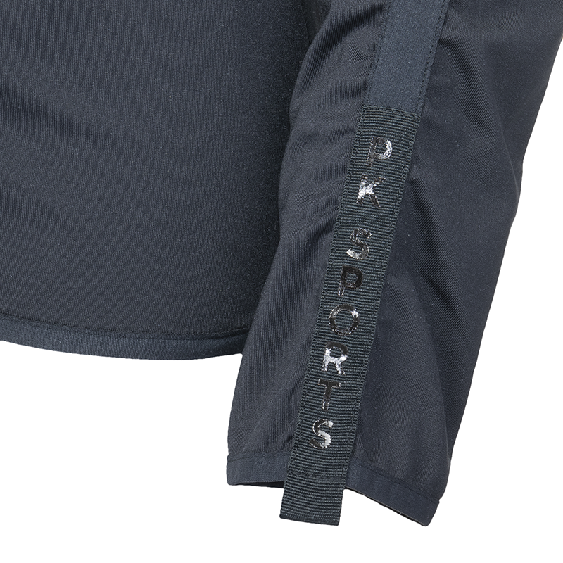 met een band over de mouw. Het vest heeft verborgen zakken met rits,